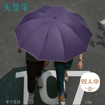 天堂 加大雨伞三折 晴雨两用商务伞10骨大雨伞男女 紫兰