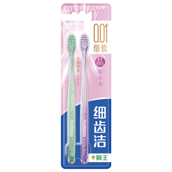 狮王(Lion)细齿洁0.01晶彩牙刷2支软毛小巧刷头细致护龈呵护口腔家庭装