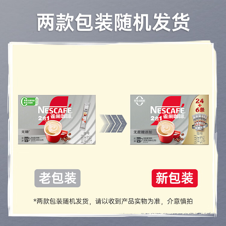 雀巢(Nestle)【樊振东同款】咖啡粉2合1无蔗糖速溶冲调饮品盒装30条330g