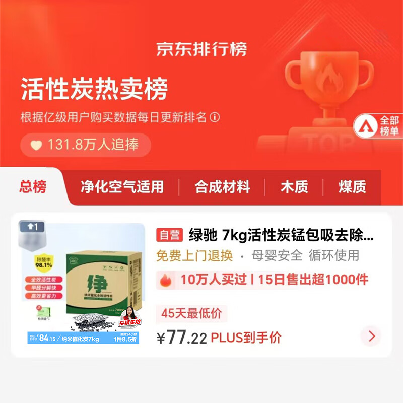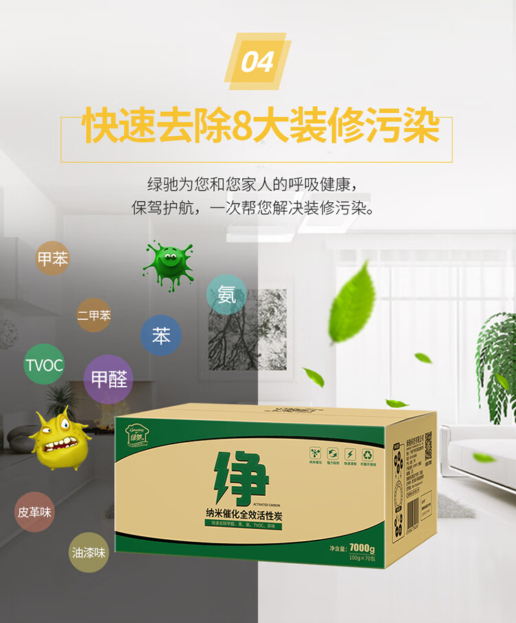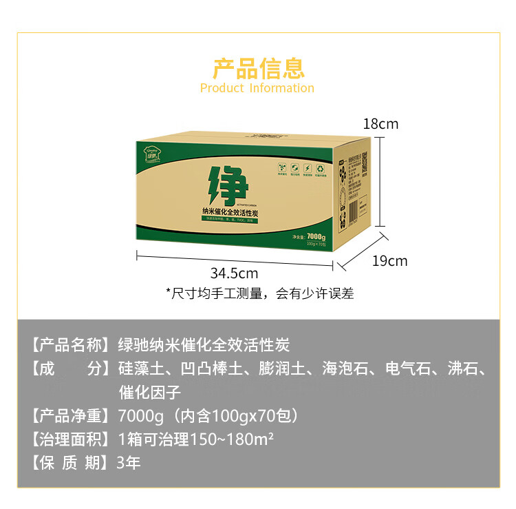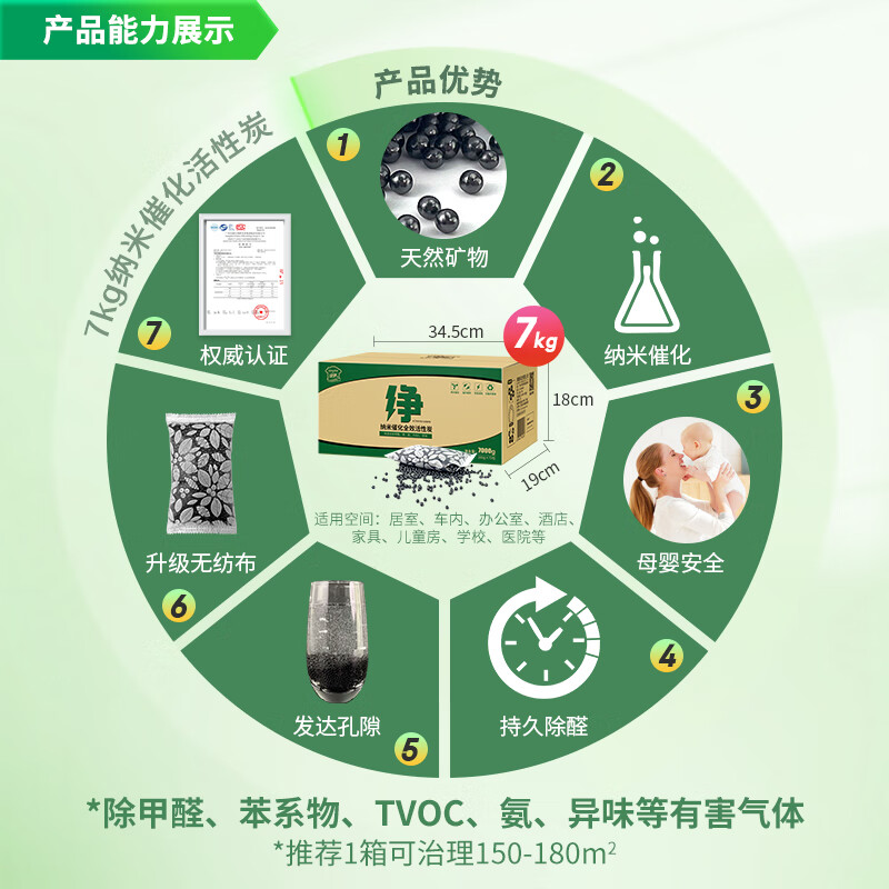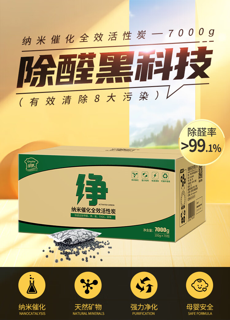 绿驰 7kg活性炭锰包吸去除甲醛清除剂新房车碳包除异味苯光触媒竹炭包