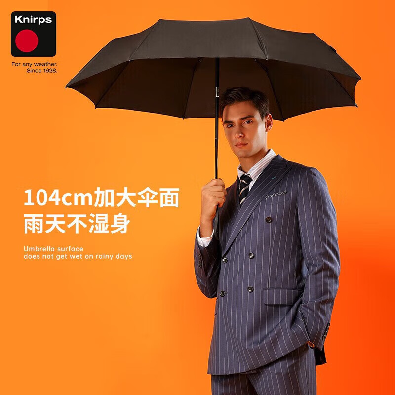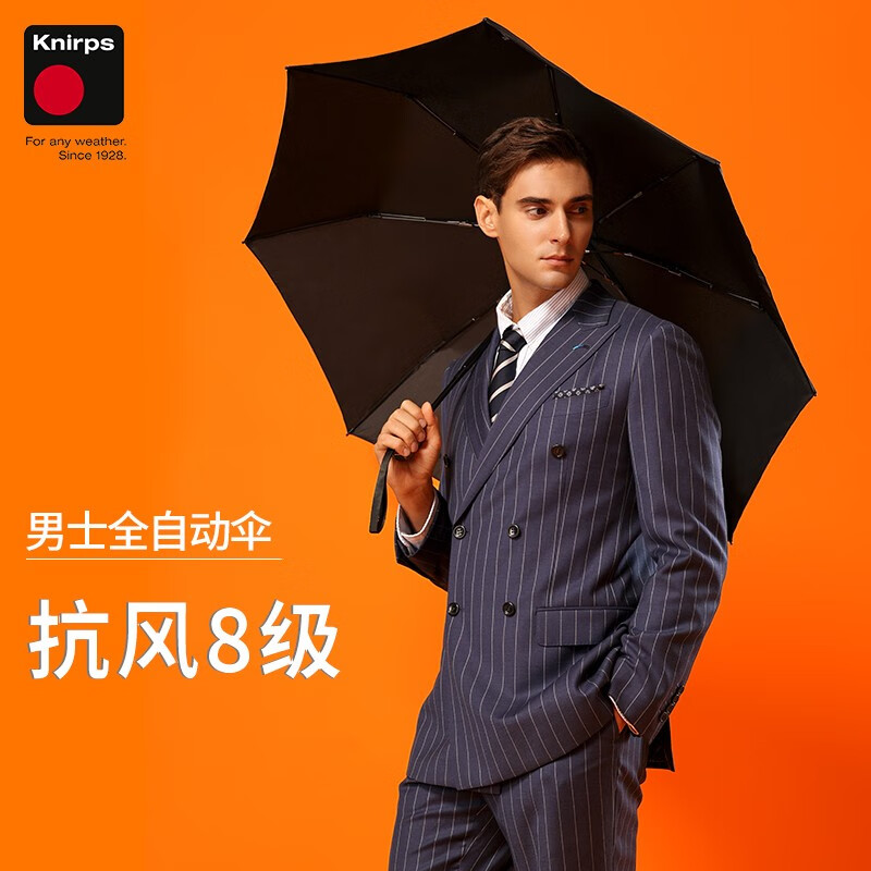 knirps全自动雨伞三折加大双人伞抗风风暴伞高档商务男士礼物 幻影黑