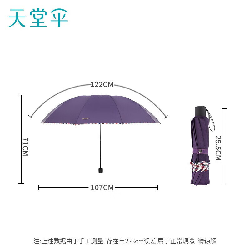 天堂 加大雨伞三折 晴雨两用商务伞10骨大雨伞男女 紫兰