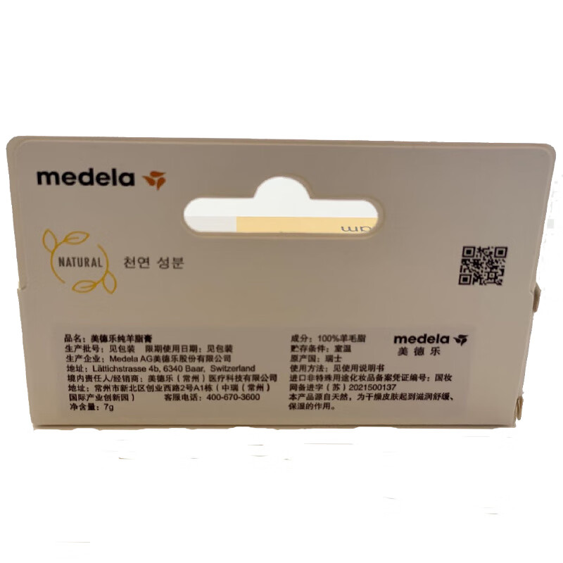 美德乐(Medela)羊脂膏乳头膏保护霜高纯度防皲裂膏滋润准孕妇瑞士进口7g