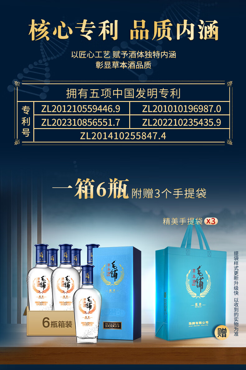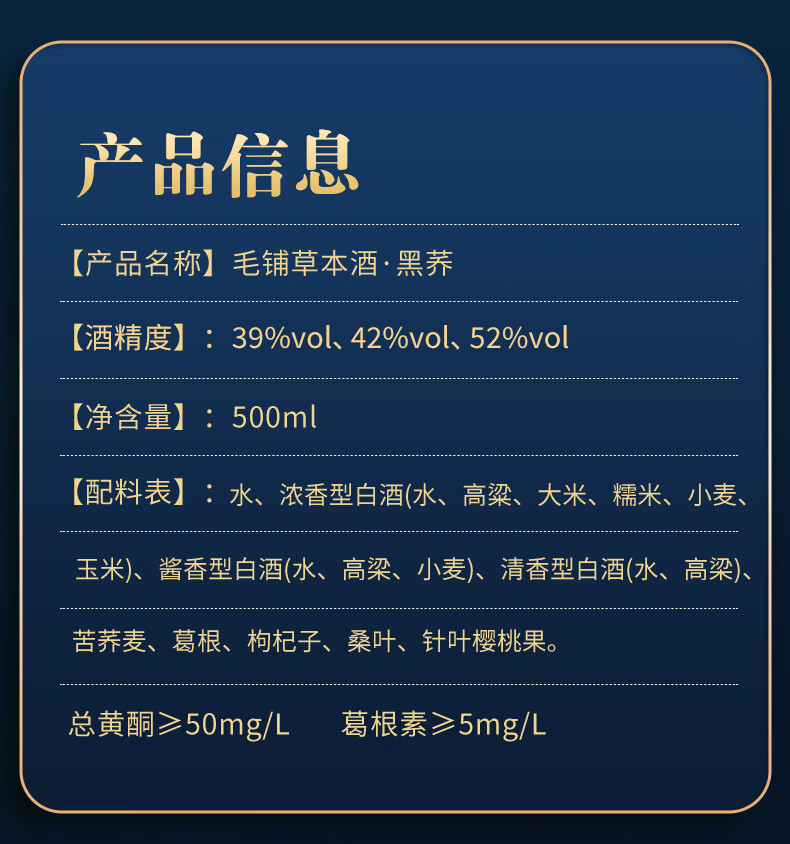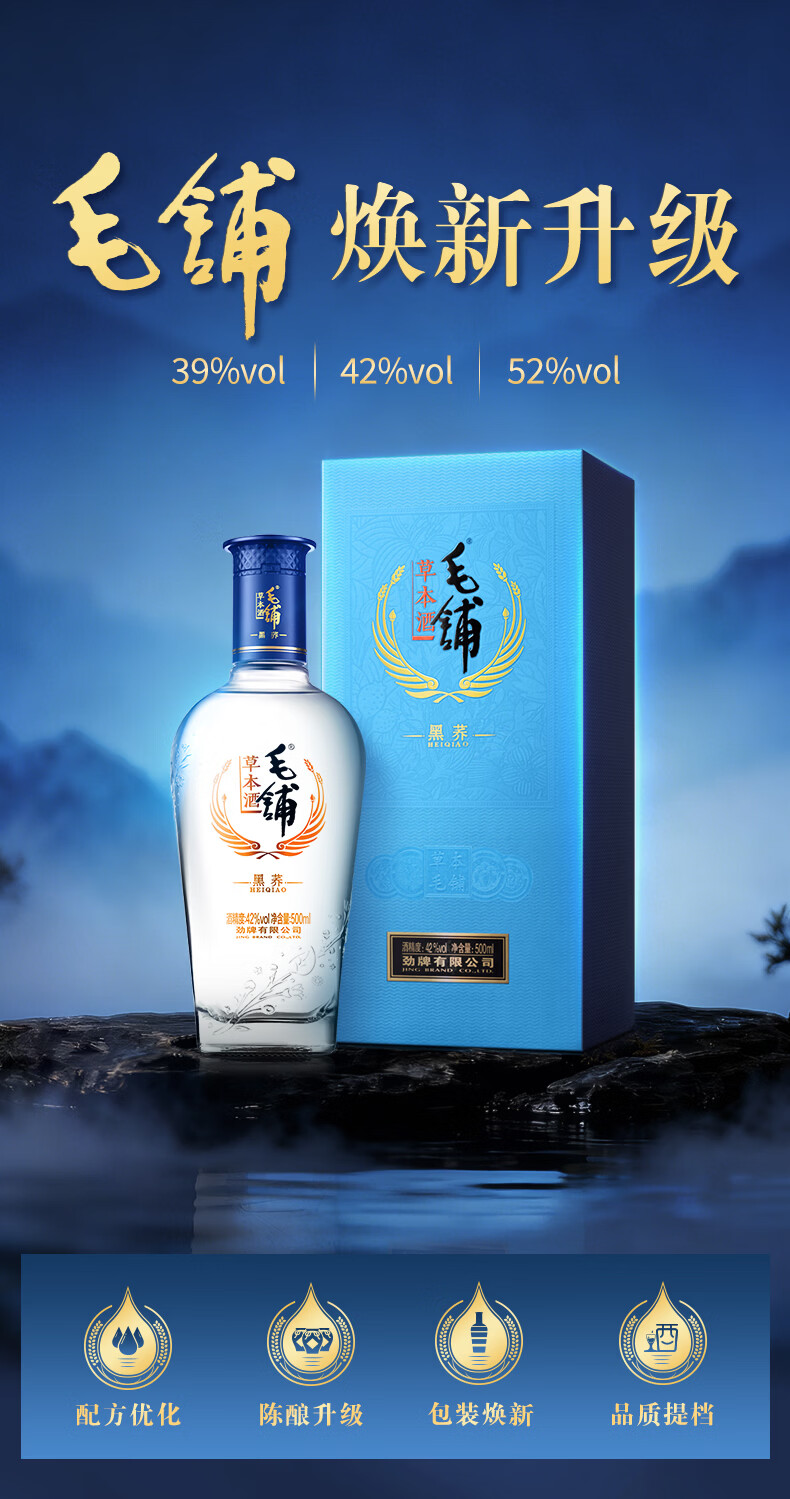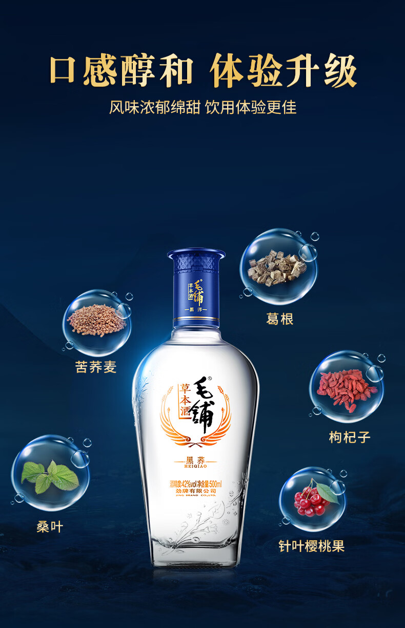 劲牌毛铺草本酒 苦荞酒 黑荞 42度 500ml 单瓶装
