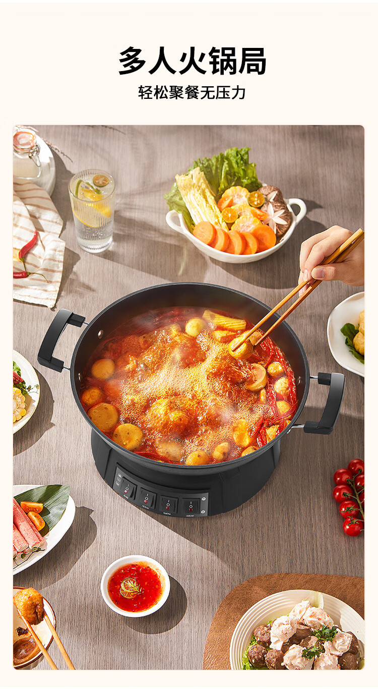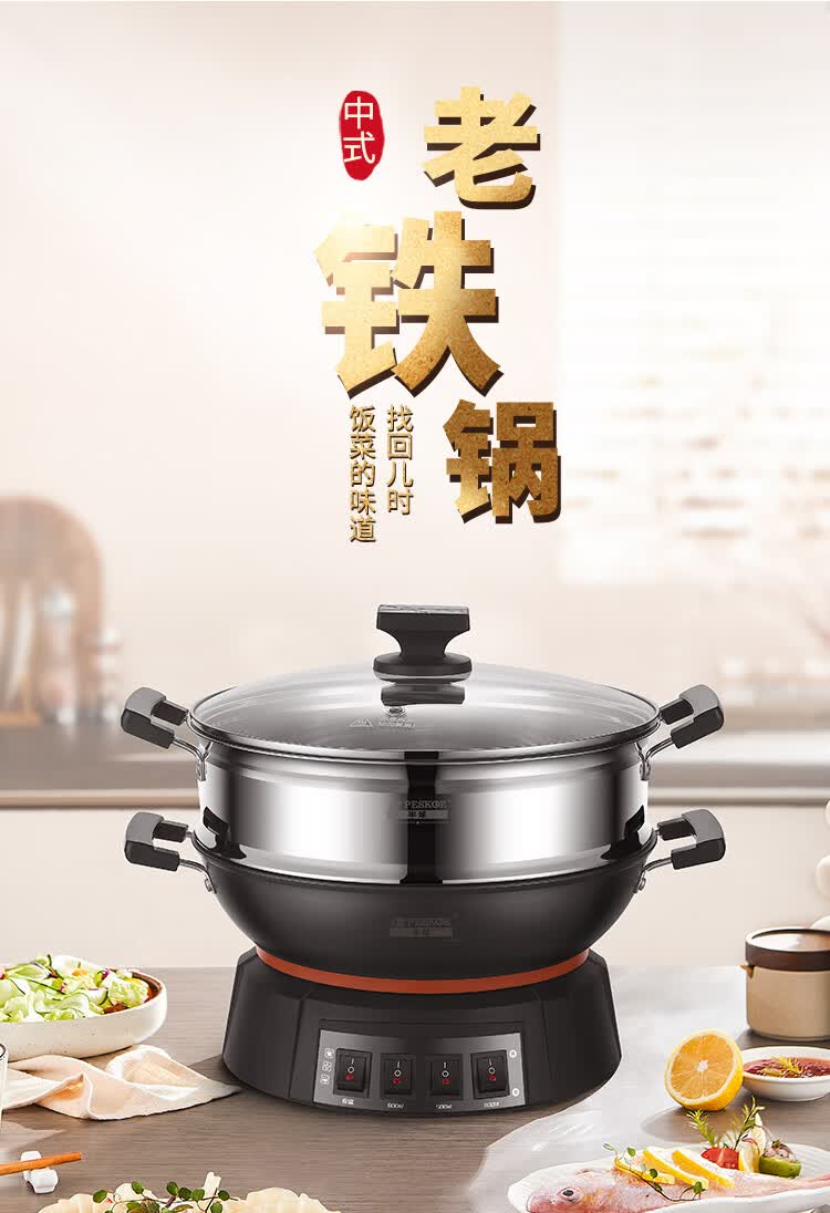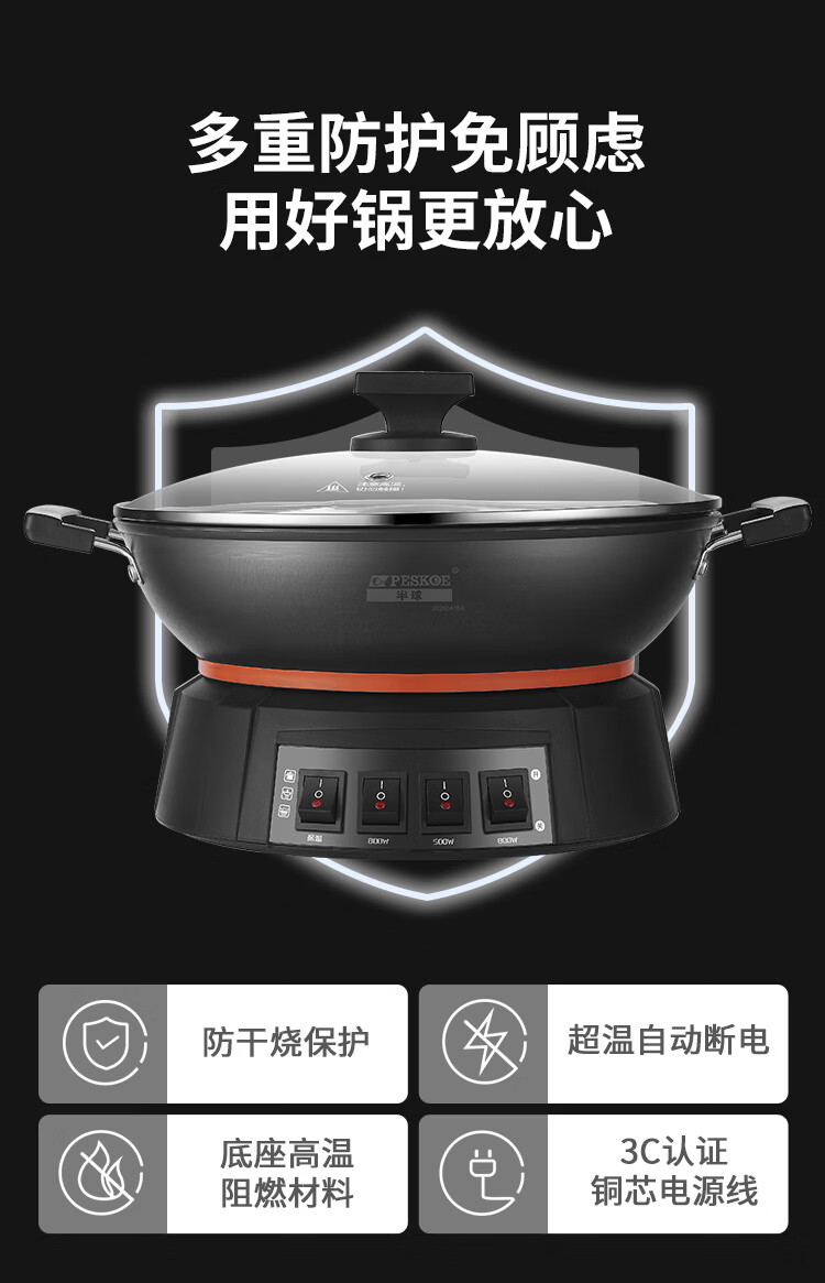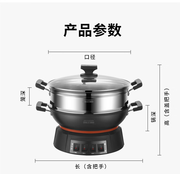 半球(Peskoe)电蒸锅多用途锅电热锅 36CM电炒锅多用途锅 加厚铸铁锅身电煮锅QT1-36 带蒸笼