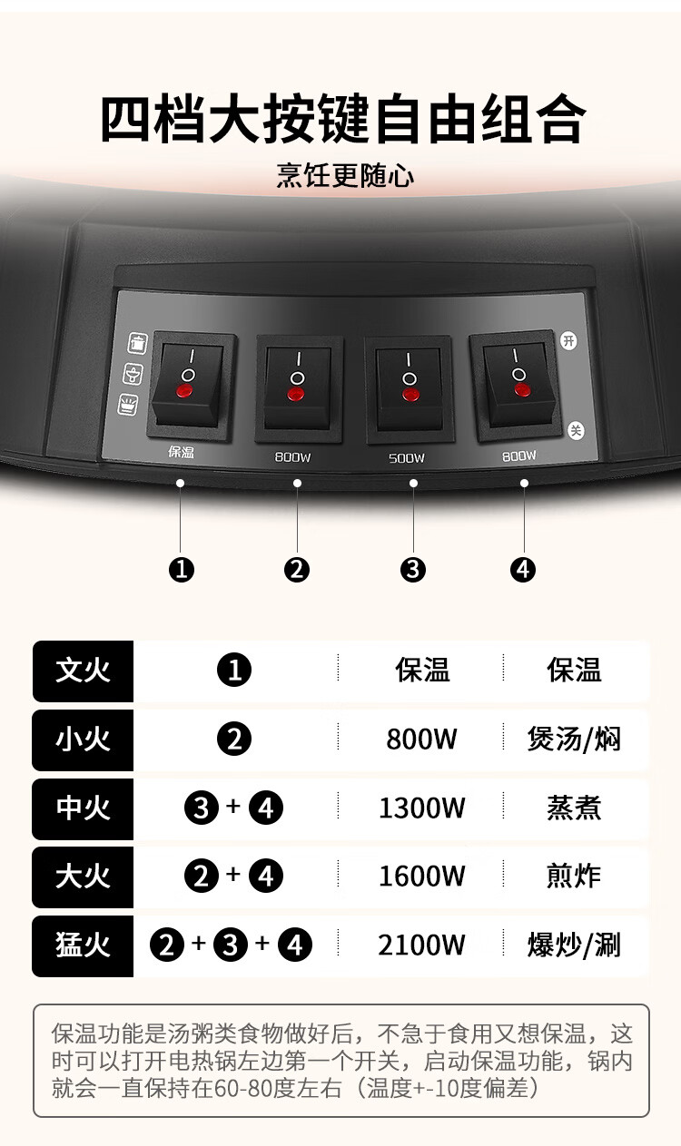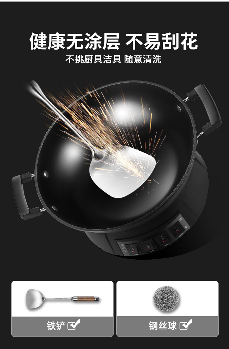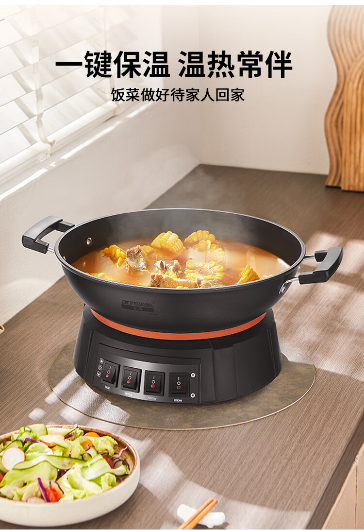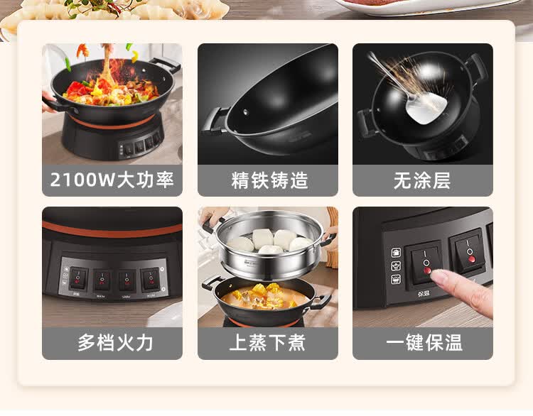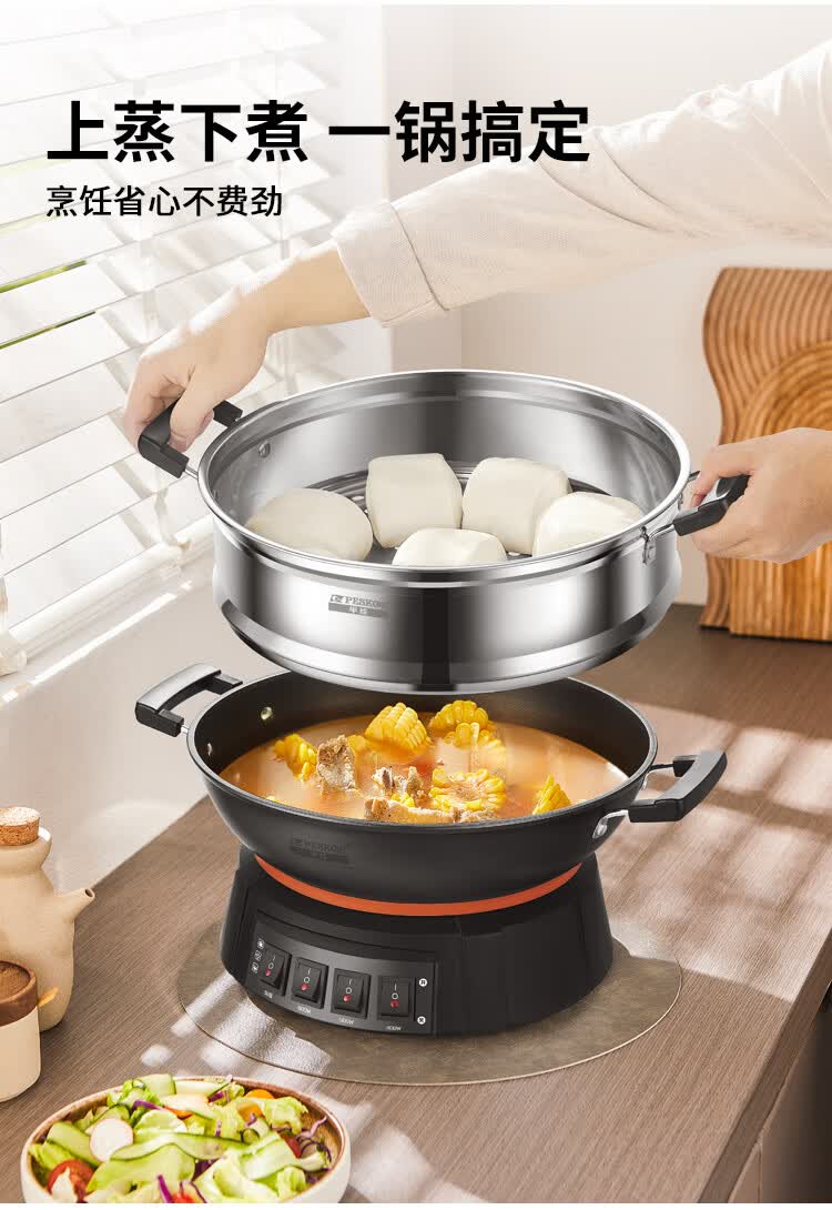 半球(Peskoe)电蒸锅多用途锅电热锅 36CM电炒锅多用途锅 加厚铸铁锅身电煮锅QT1-36 带蒸笼