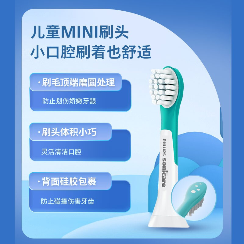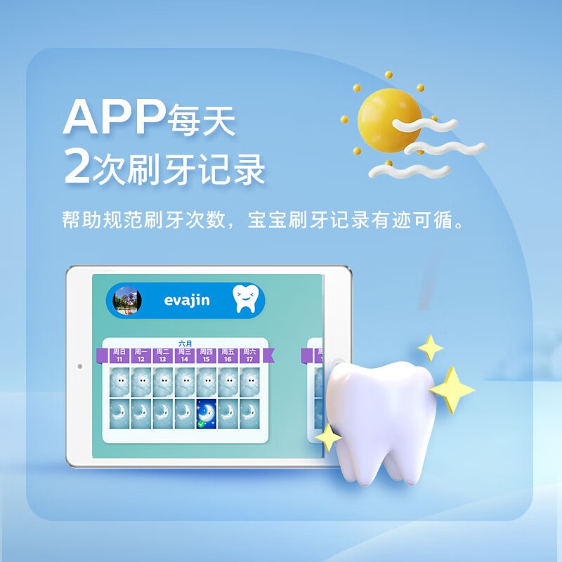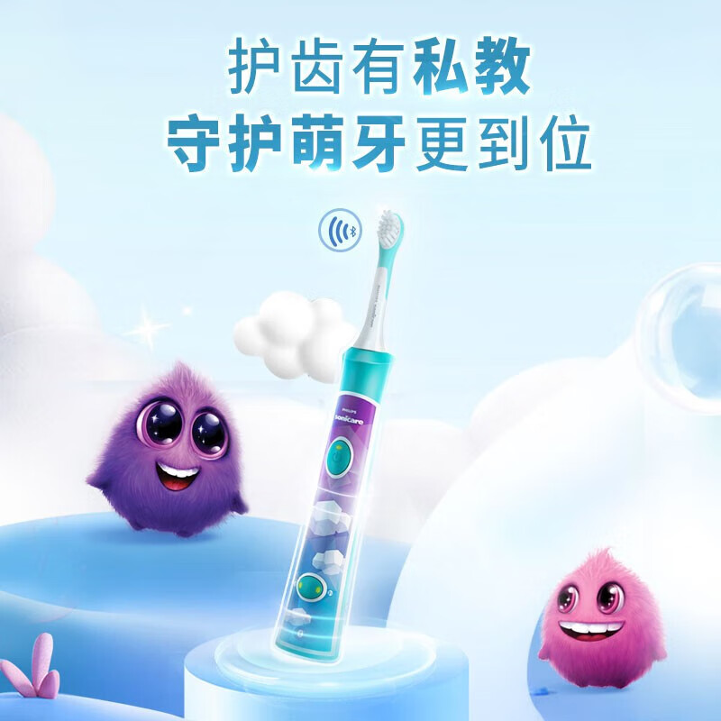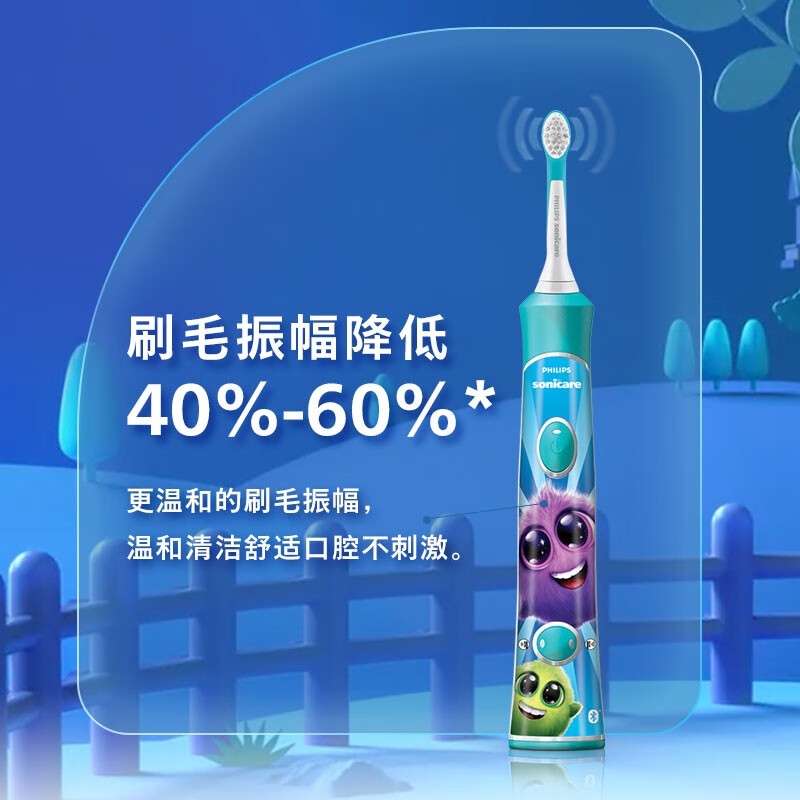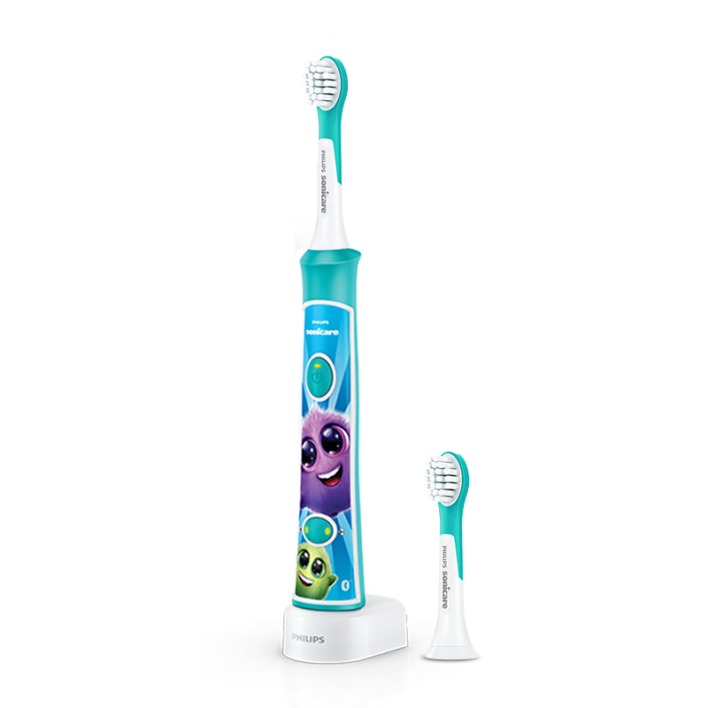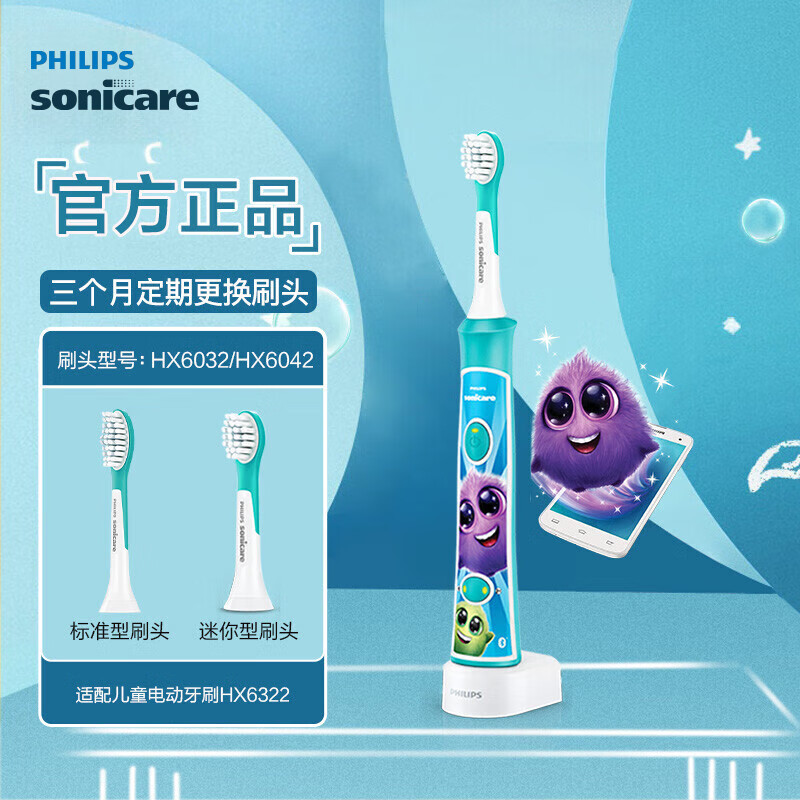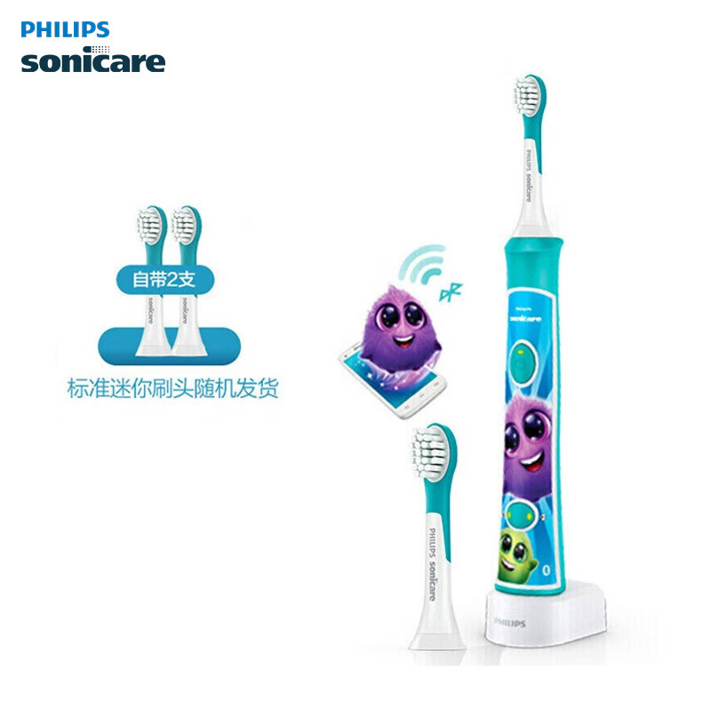 飞利浦(PHILIPS)儿童电动牙刷 送男孩女孩生日儿童礼物 蓝牙版 适用4-12岁 自带2支刷头+8款贴纸 蓝色HX6322/04