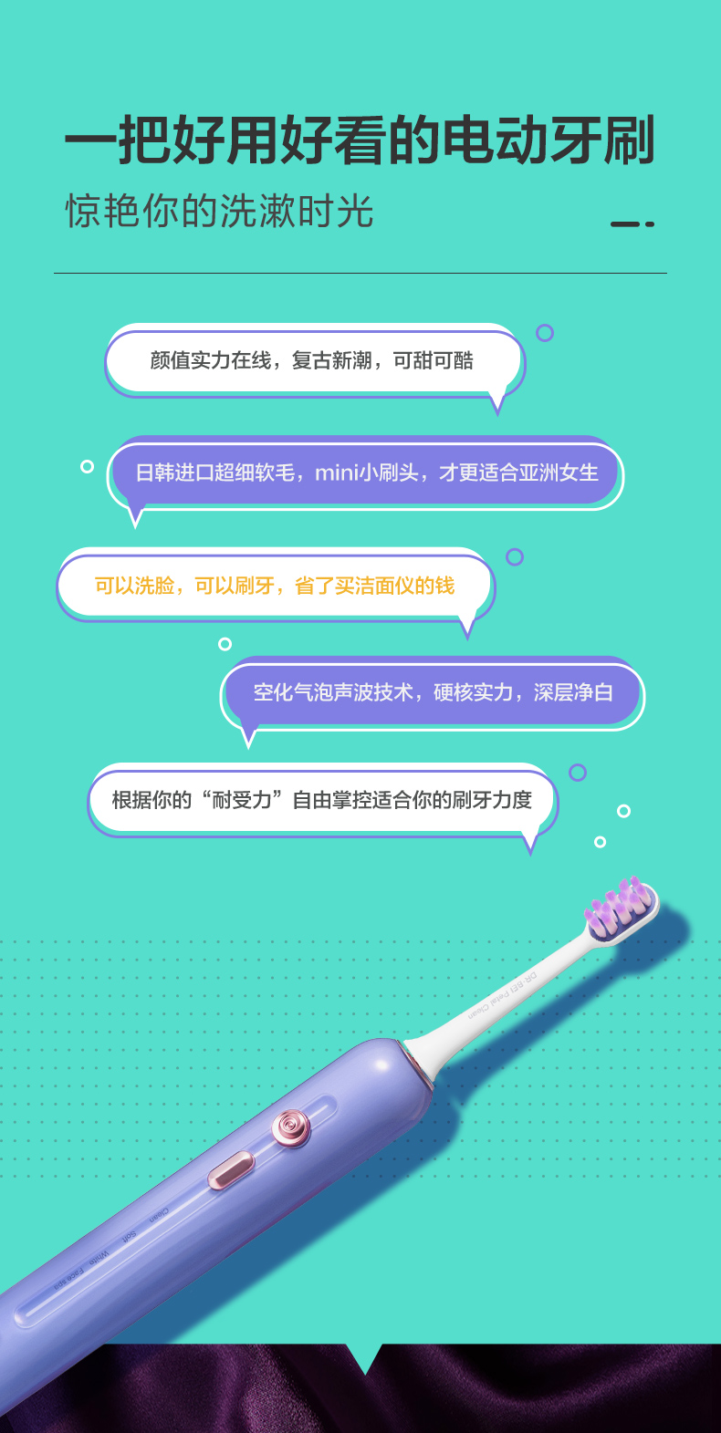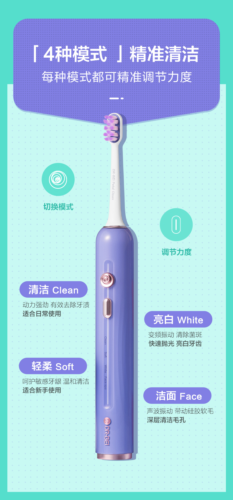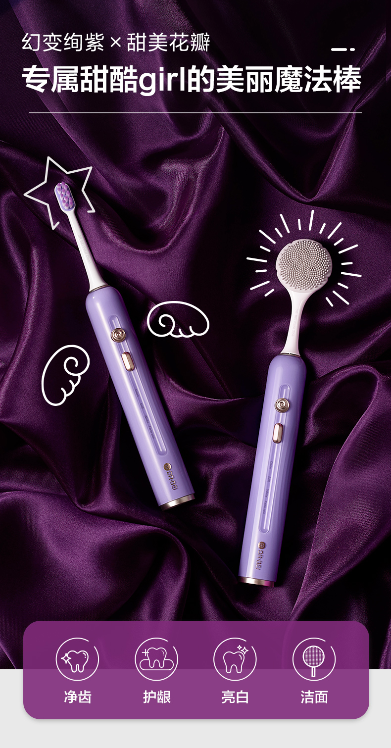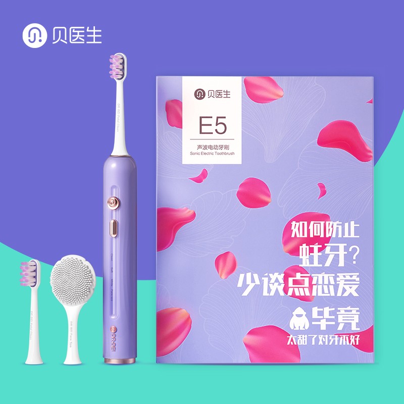 贝医生(DR·BEI) 全自动高端声波电动牙刷E5小花瓣防水充电式学生情侣牙刷送男女朋友 送男友礼物 【小花瓣】E5紫色